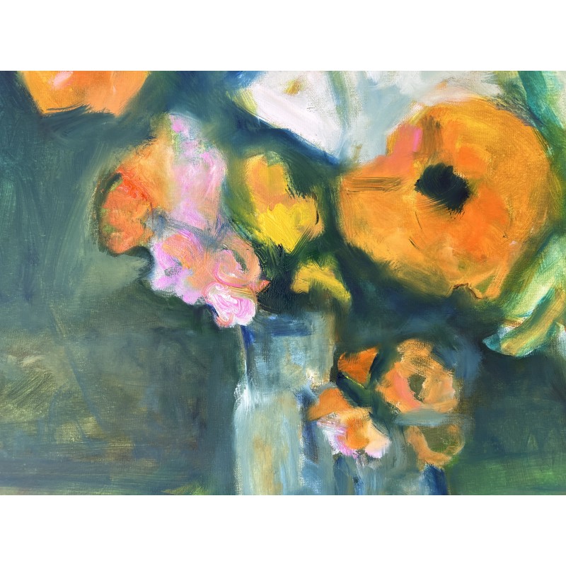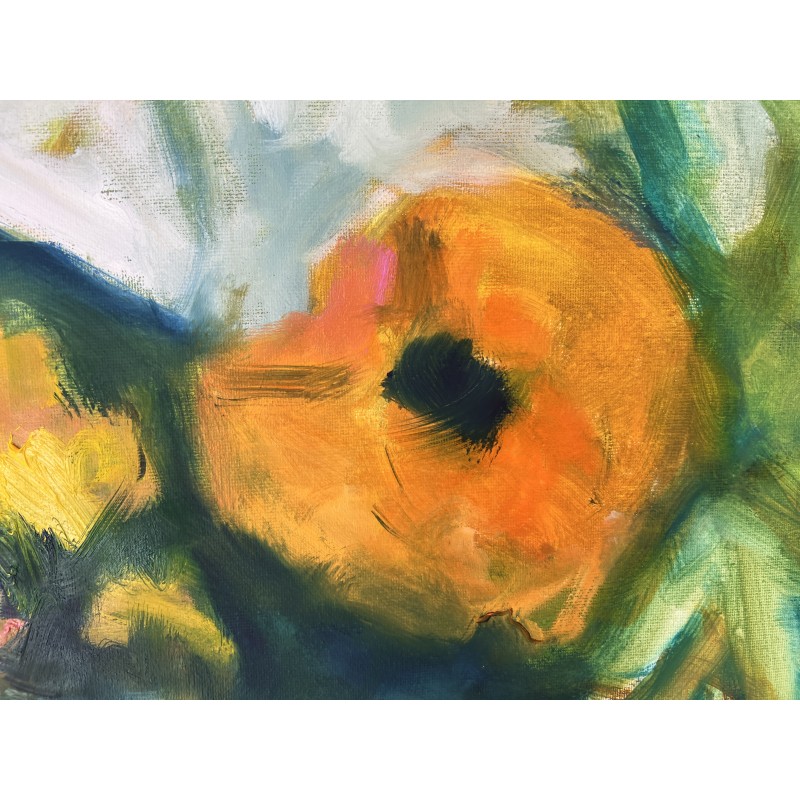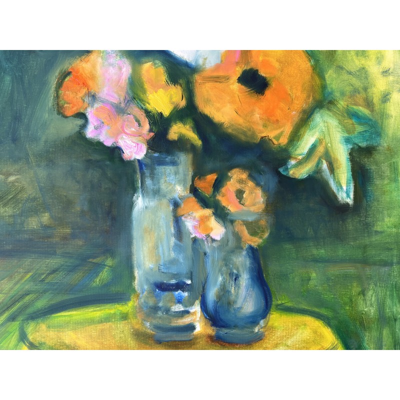 Created in 2025 by Ukrainian artist Marina Stognieva, Touch of Autumn Sunlight is a luminous floral composition that captures the golden calm of an autumn afternoon.
