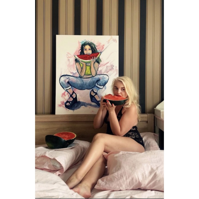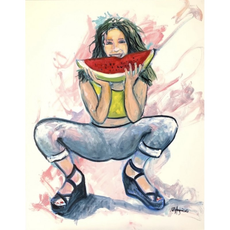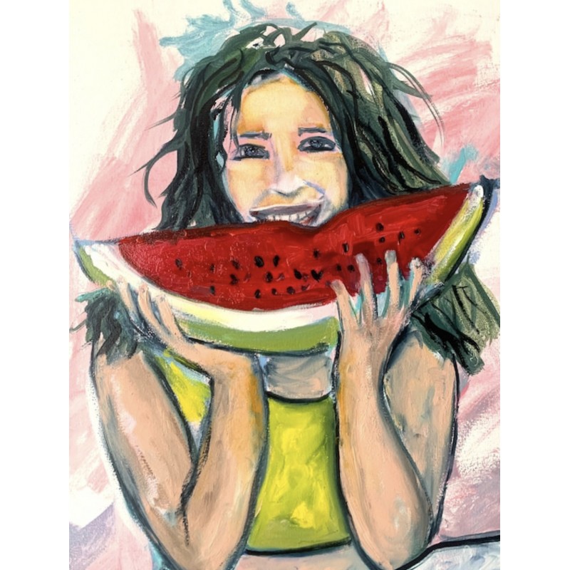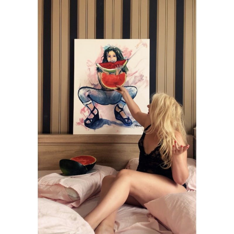Girl with a Watermelon by Marina Stognieva captures the spirit of summer — joy, spontaneity, and the sweetness of freedom.