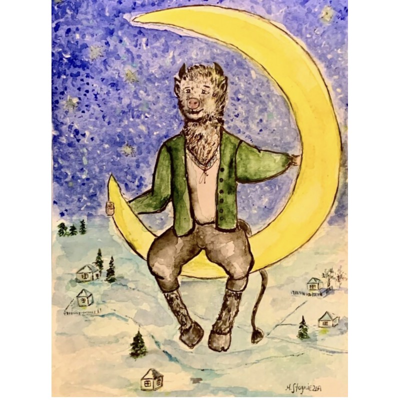 Original watercolor illustration based on the plots of N. Gogol's famous story "Evenings on a Farm near Dikanka". created by the Ukrainian artist M. Stognieva.