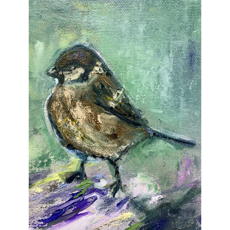 “Lilacs and Sparrows” is a floral composition filled with the light and fragrance of spring. A generous bouquet of lilacs in soft lilac, violet and white tones stands in a clear glass vase, while two curious sparrows sit nearby, bringing a touch of life and playfulness to the scene. Marina Stogniieva combines expressive textured brushwork with gentle color transitions, making the flowers appear lush and three-dimensional. This painting brings a sense of calm, homely comfort and joyful spring energy to any interior.