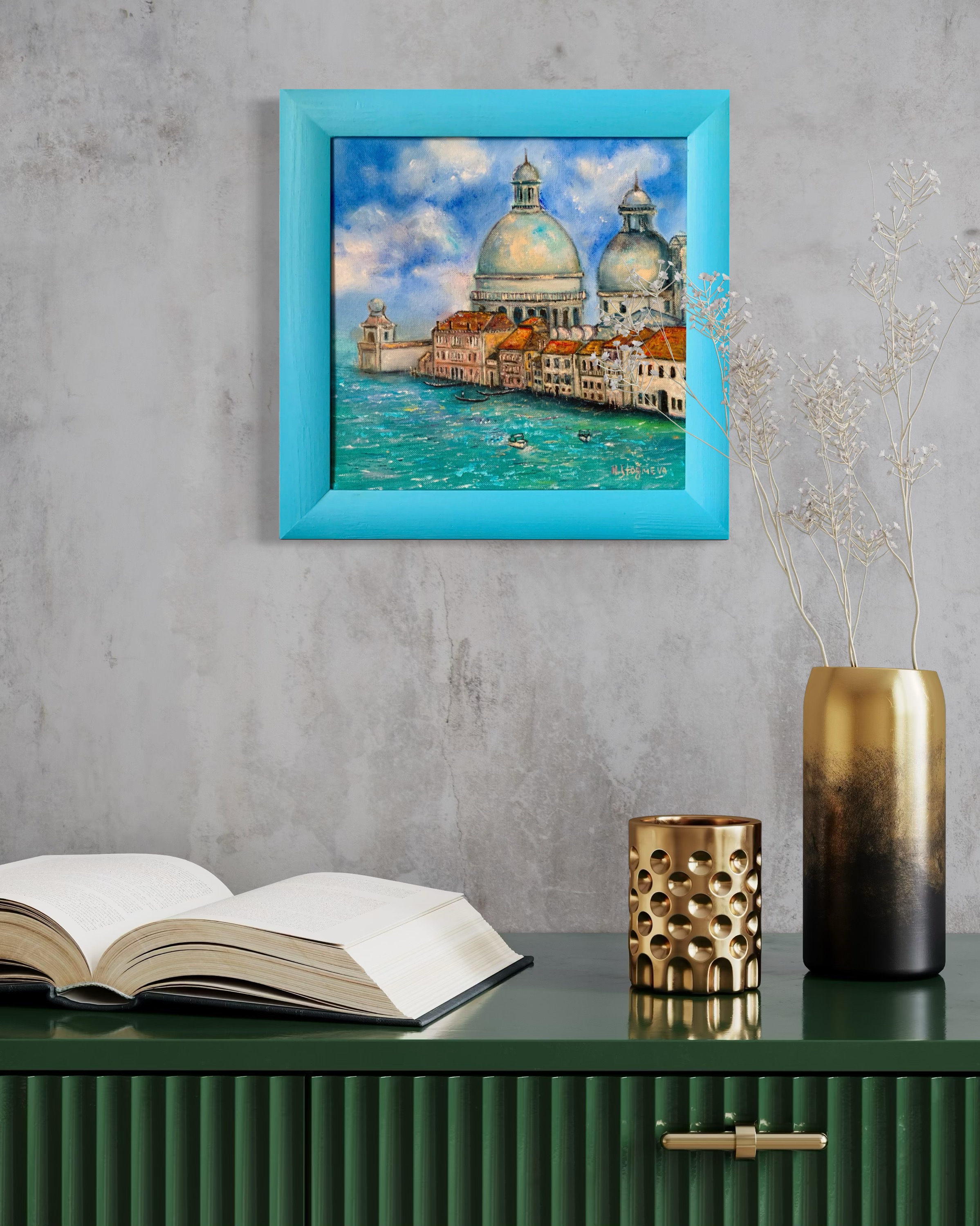 The painting was painted by the artist Marina Stognieva, inspired by her travels in Italy. The canvas depicts the Grand Canal, one of the most wonderful views of Venice, delighting millions of tourists. The painting is done in light colors, the blue sky will mark the fine weather and joy, and the sparkling waters give the city landscape a special mood.