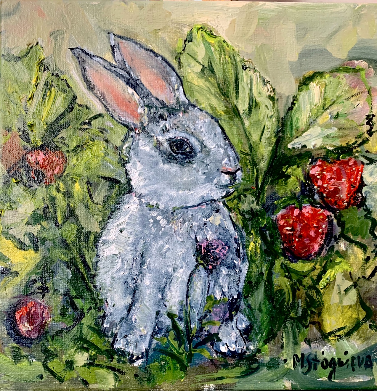 №3 Cute card "Bunny in strawberries" (14*15cm)