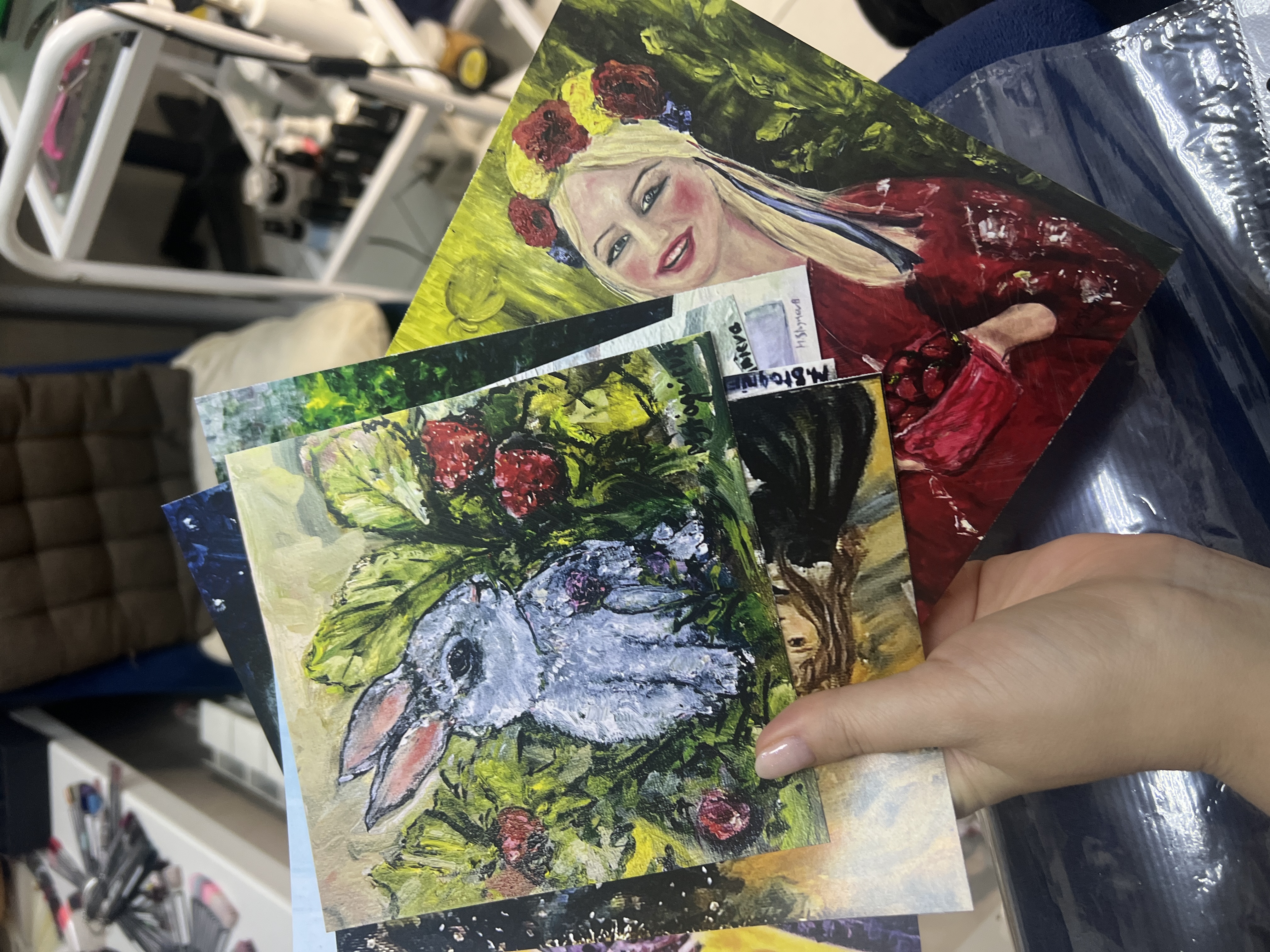 Welcome to the official website of Ukrainian artist Marina Stognieva. On this page, you can choose and order postcards with prints of paintings and the artist's original signature on the back (or without a signature, if desired). The cost of a postcard with delivery is $25, if you order several postcards with delivery to the same address, then the second and subsequent postcards will cost you $15 each.