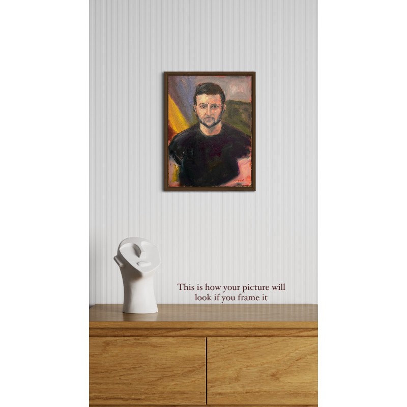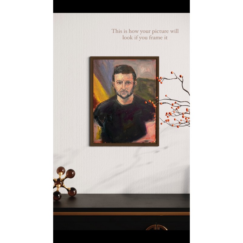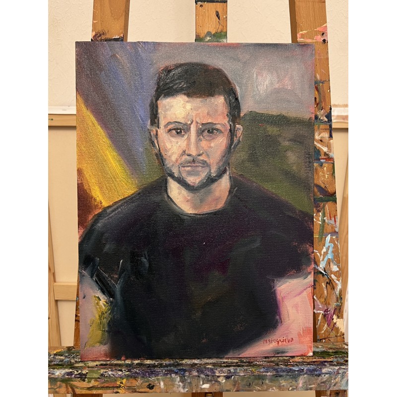 Painted in 2023 by Ukrainian artist Marina Stognieva, this portrait of President Volodymyr Zelenskyy represents courage, resilience, and the unbreakable spirit of Ukraine.