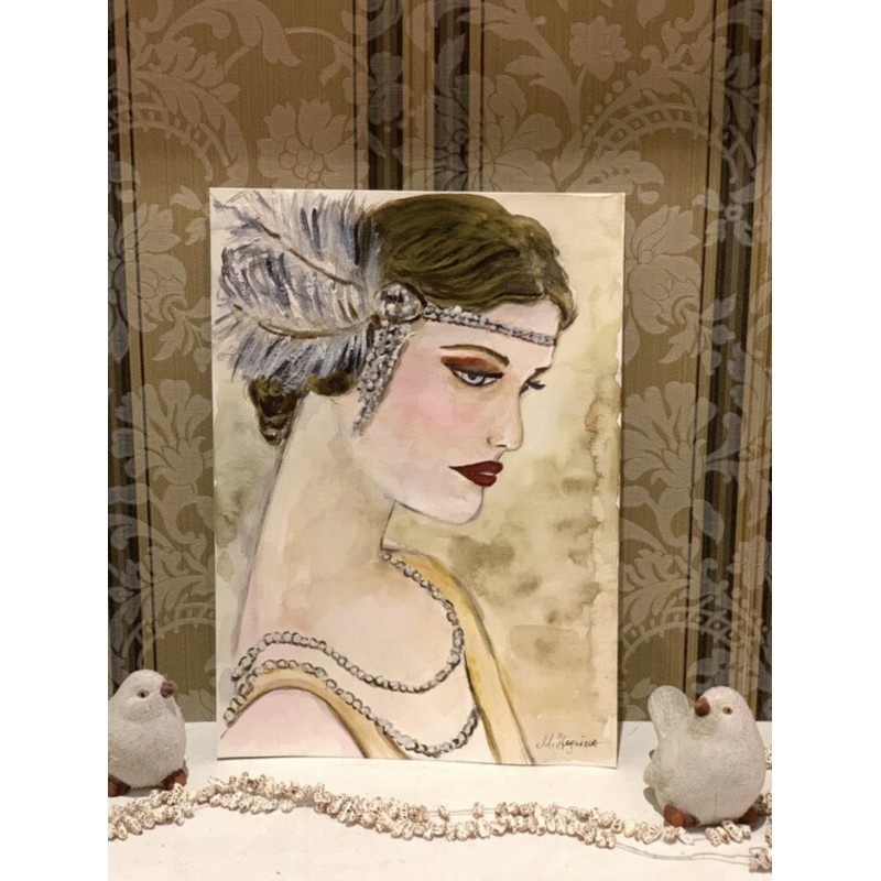 Girl in 1920s Style is part of Marina Stognieva’s watercolor series dedicated to the spirit of the Jazz Age — an era of transformation, elegance, and new feminine identity.