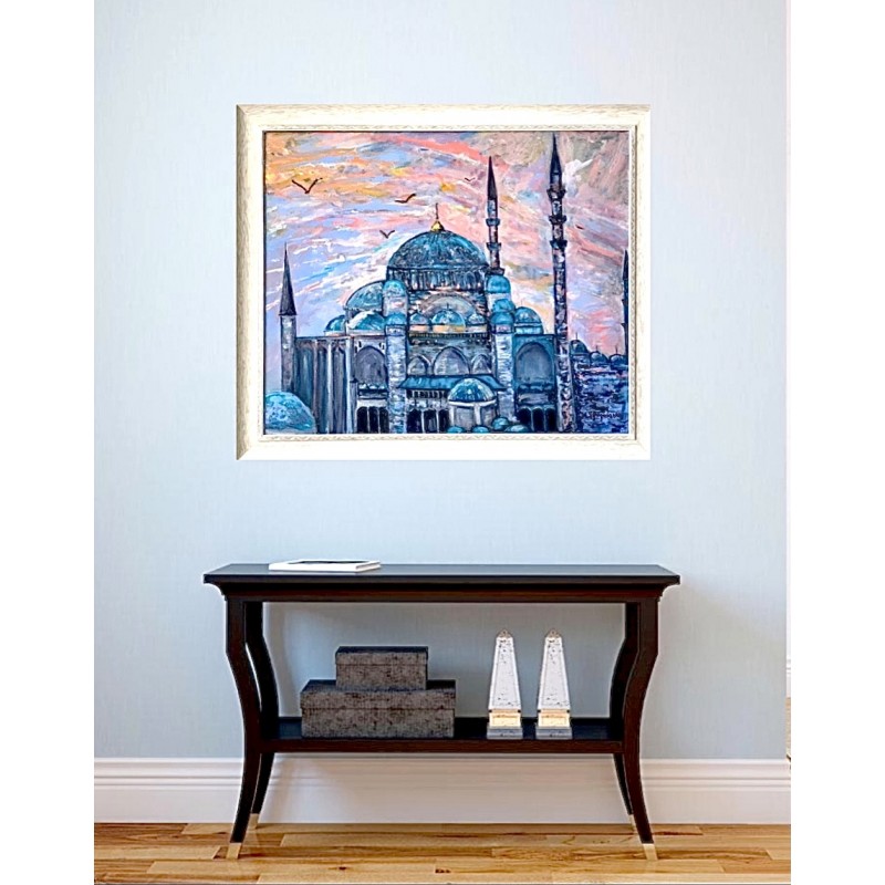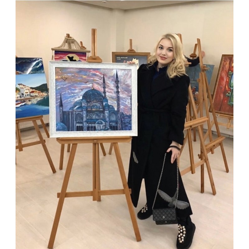 Artist Marina Stognieva has traveled to Turkey several times. The country and ancient culture captivated the artist's heart, as evidenced by several paintings in which she shares her impressions of what she saw. The painting "Istanbul, Suleymaniye Mosque" reveals to our gaze a majestic architectural structure, built by order of Sultan Suleiman the Great. The painting is made with acrylic on canvas, presented at an exhibition in Kiev, in honor of the arrival of the President of Turkey.